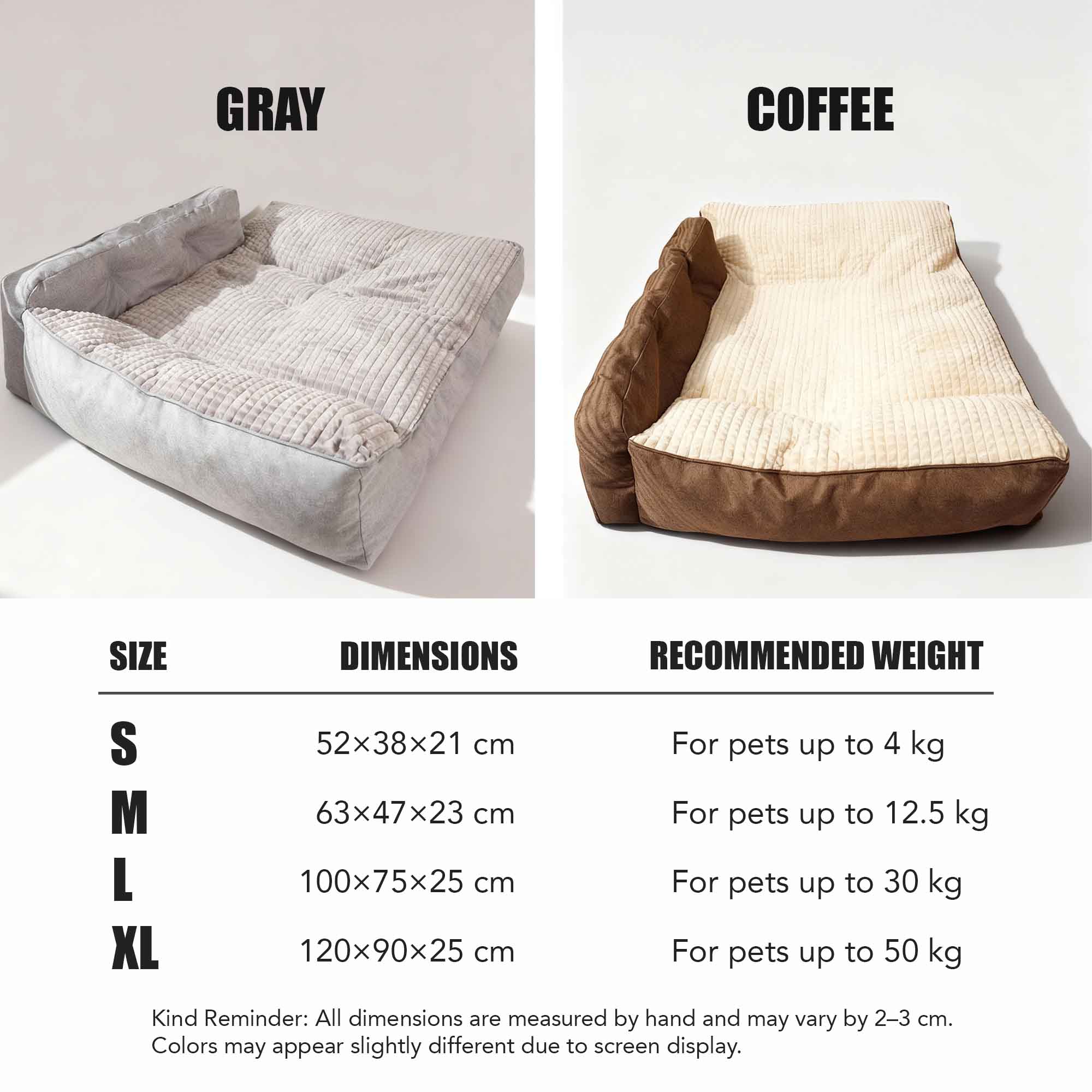 •  XL: 120*90*25 cm (47.2 * 35.4 * 9.8 inches)
