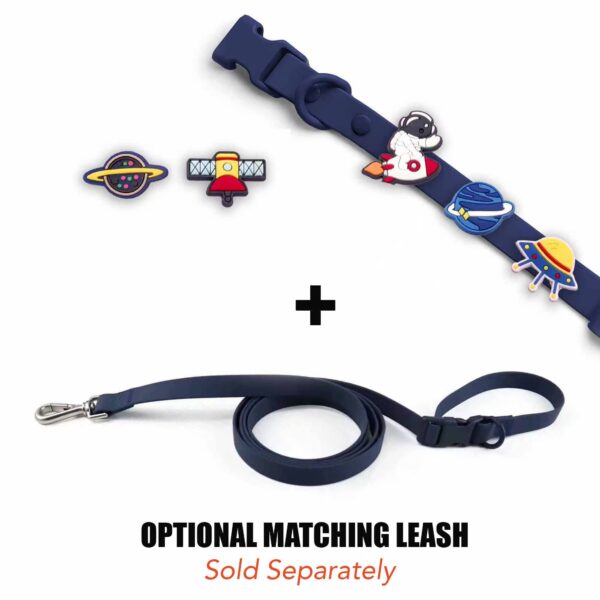 Astronaut, rocket, planet, and spaceship charms into the collar’s “mission slots.” Each snap is a launch sequence, turning your pup’s walk into a cosmic adventure.