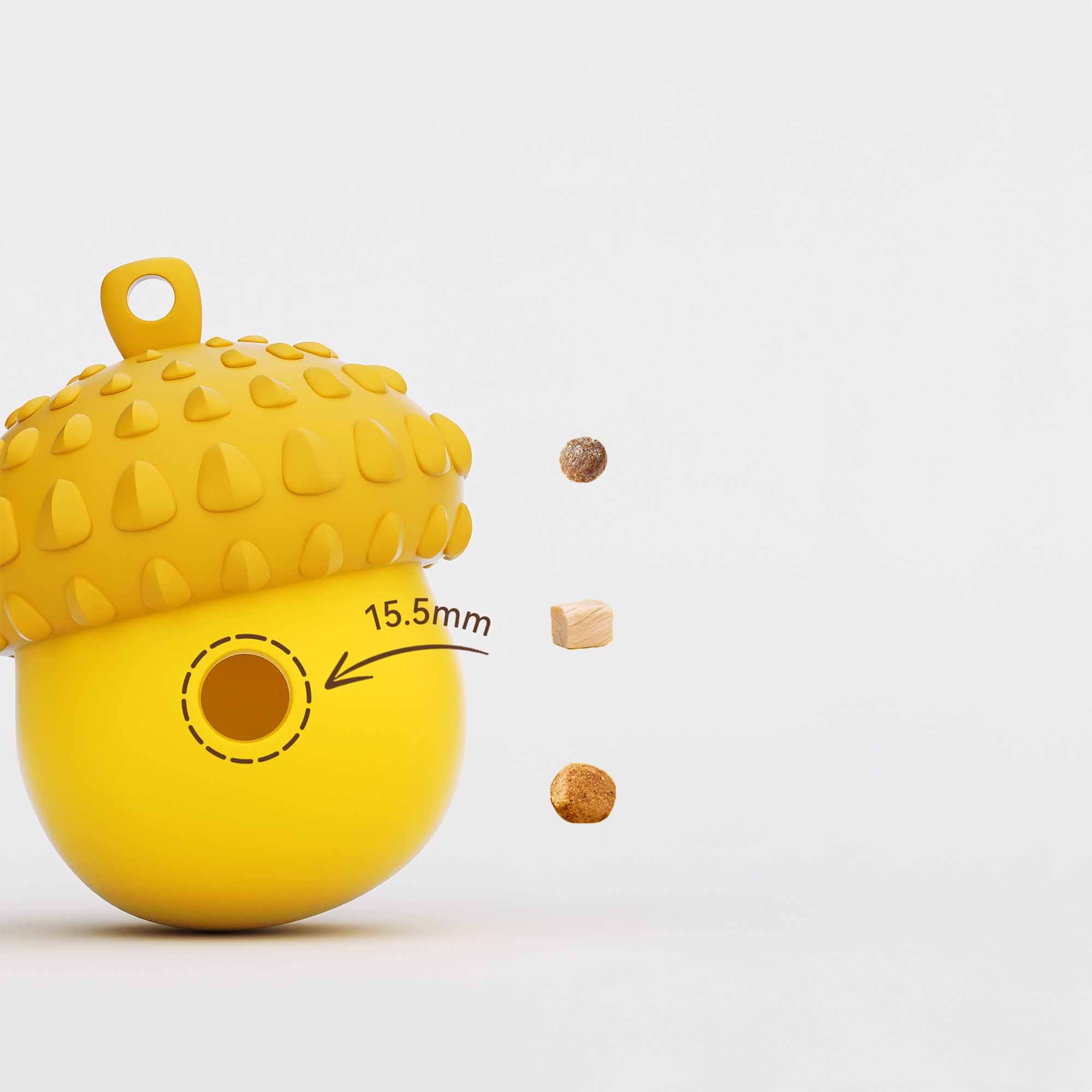 Cute acorn, big enrichment—bounce, chew, and snack smarter.