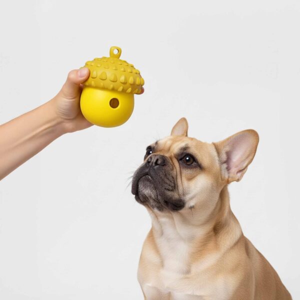 • Load the bone or pinecone with high‑value treats to spark interest, then transition to kibble.