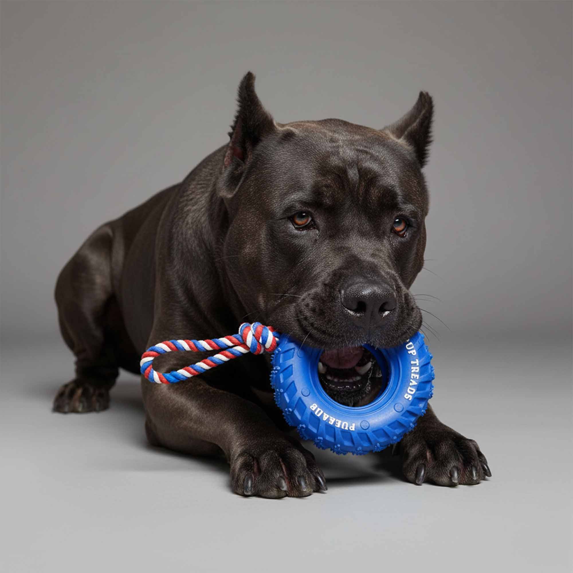 • Treat Tire: Durable, non‑toxic rubber with through‑rope channel and treat cavity.