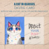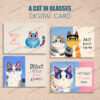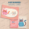 Printable Digital Cat in Glasses Card Printable Digital Cat in Glasses Card