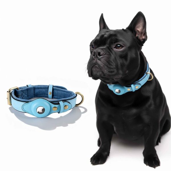 • AirTag Holder Collar: Leather + Fabric, Durable metal buckle and D-ring