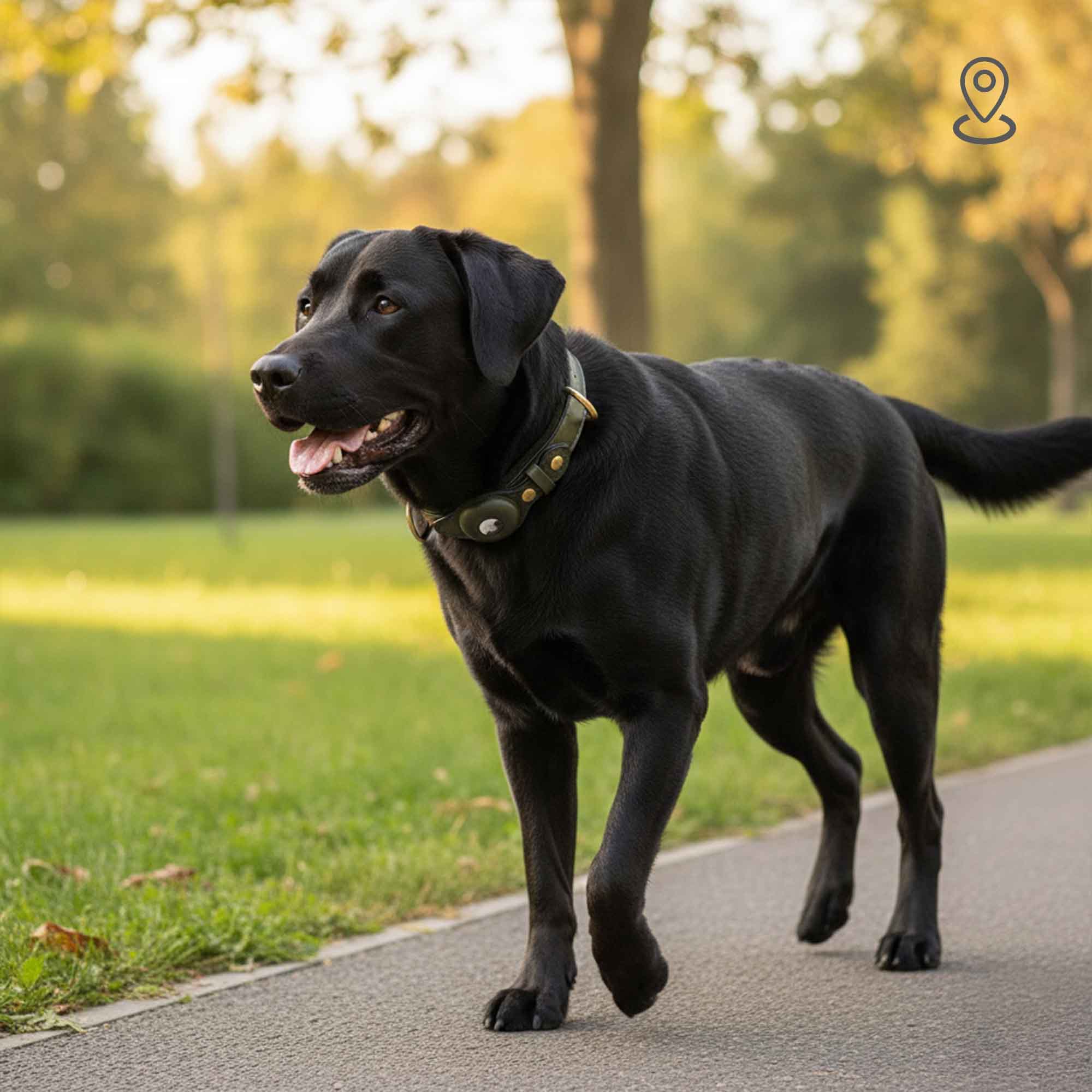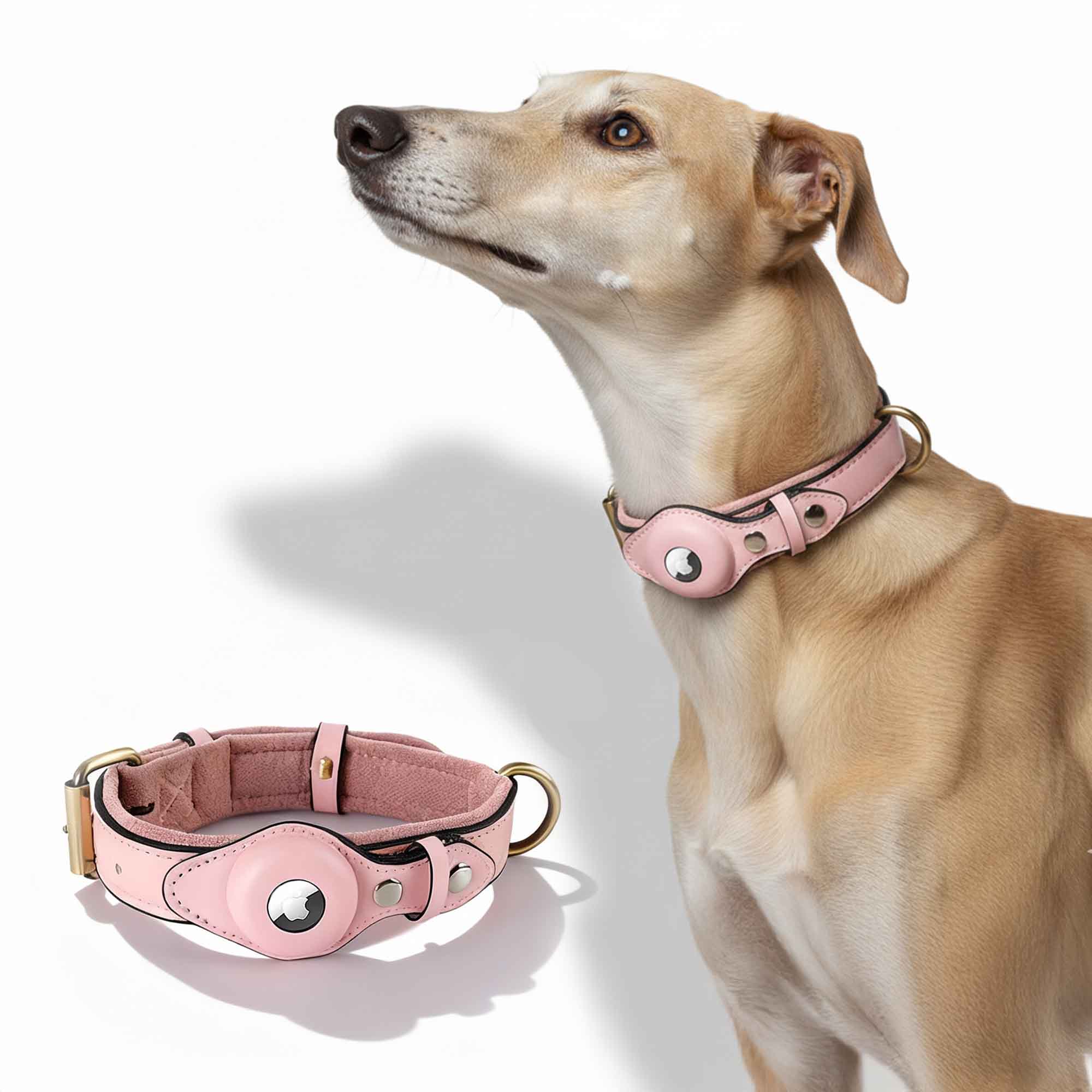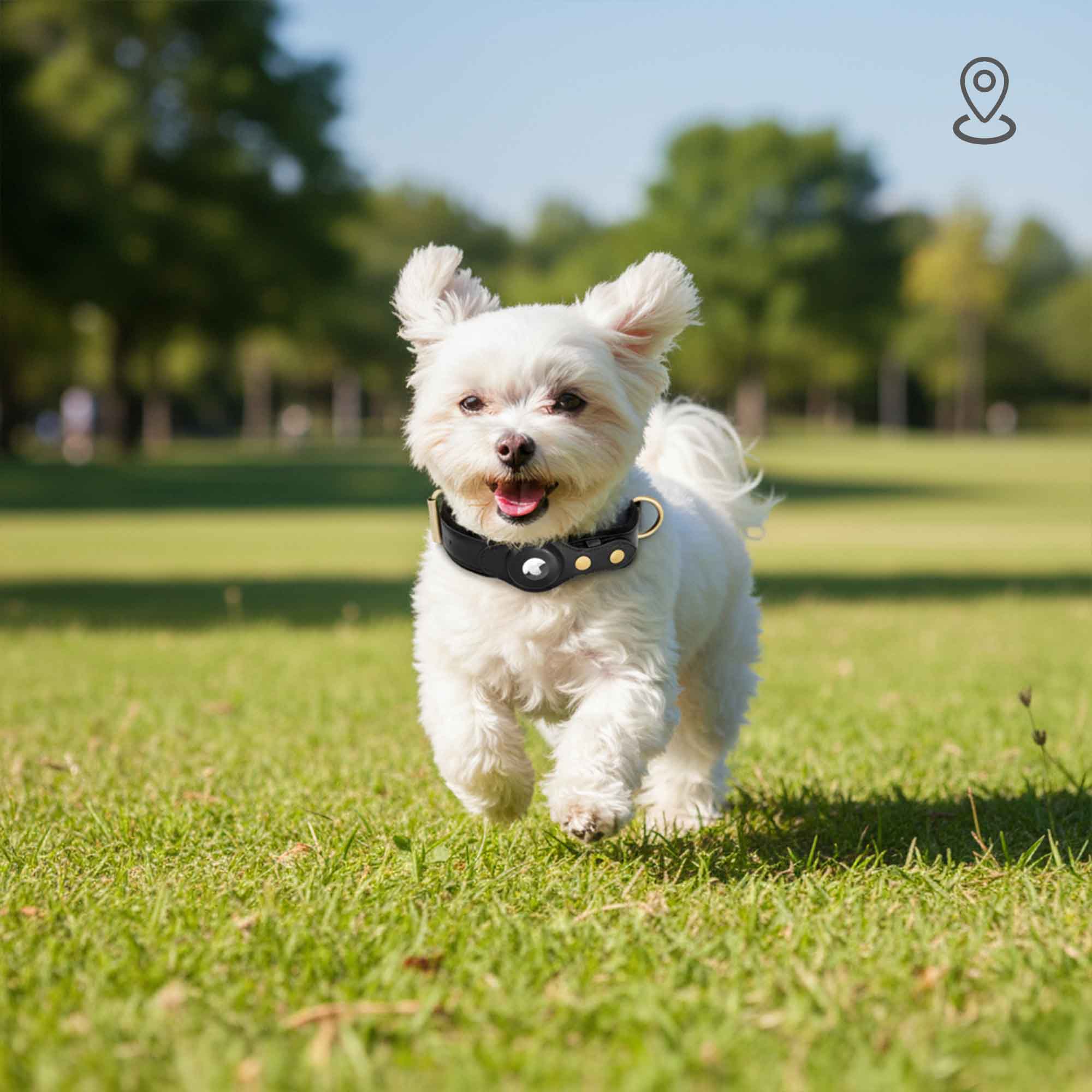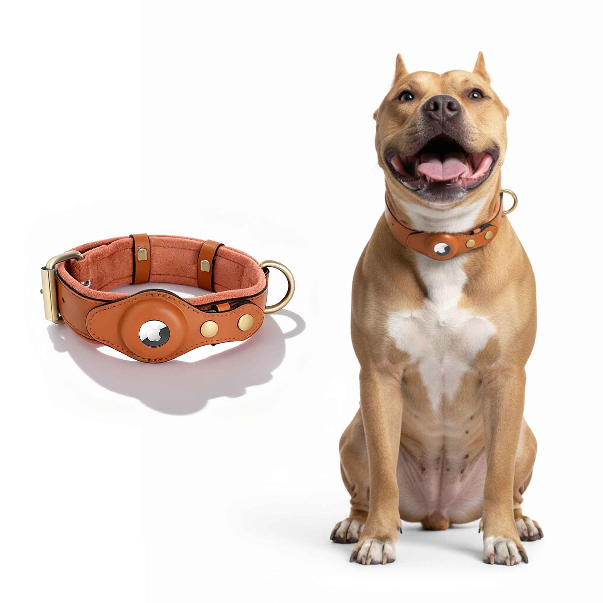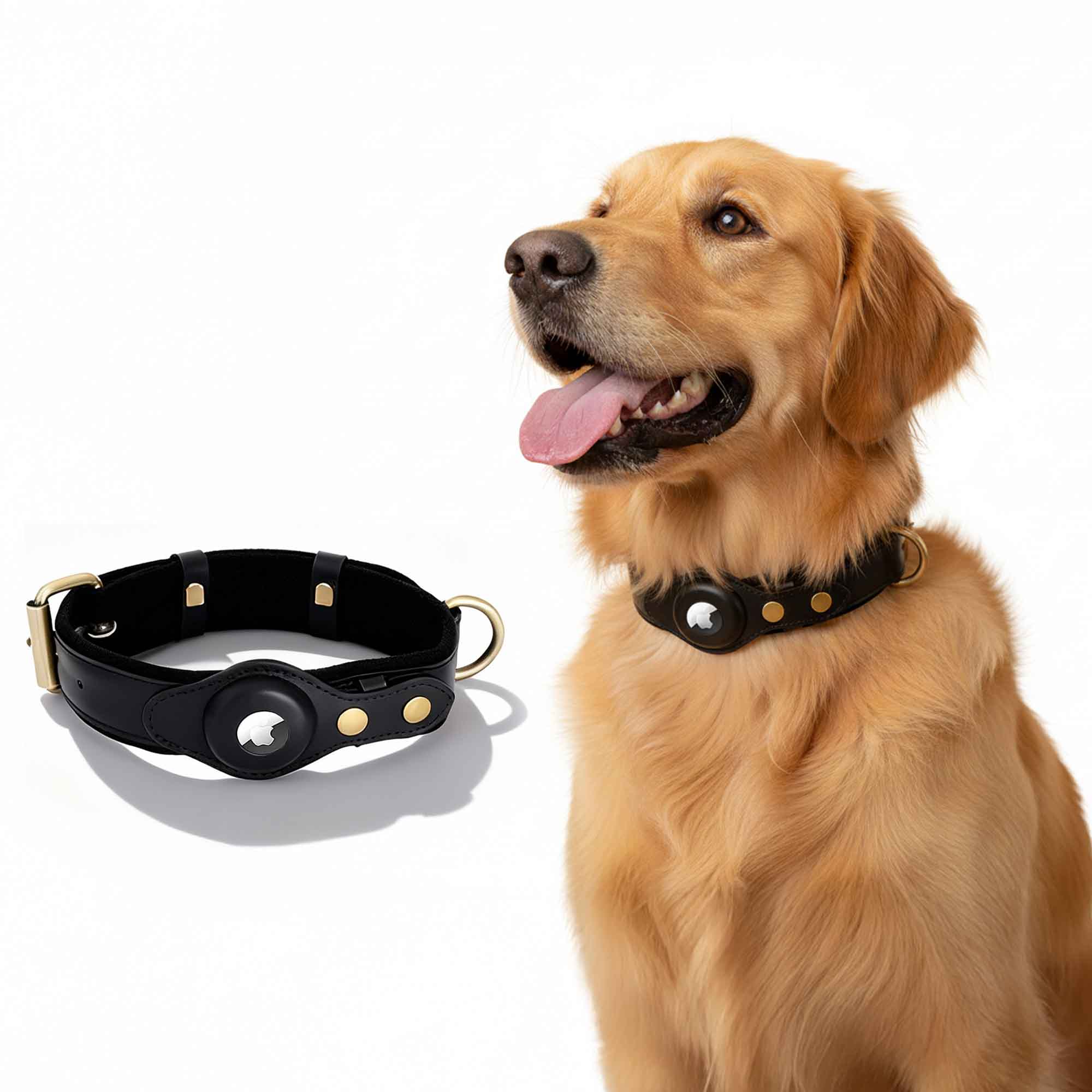 • AirTag Holder Collar: Leather + Fabric, Durable metal buckle and D-ring