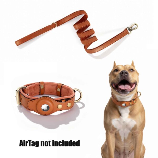 • AirTag Holder Collar: Leather + Fabric, Durable metal buckle and D-ring