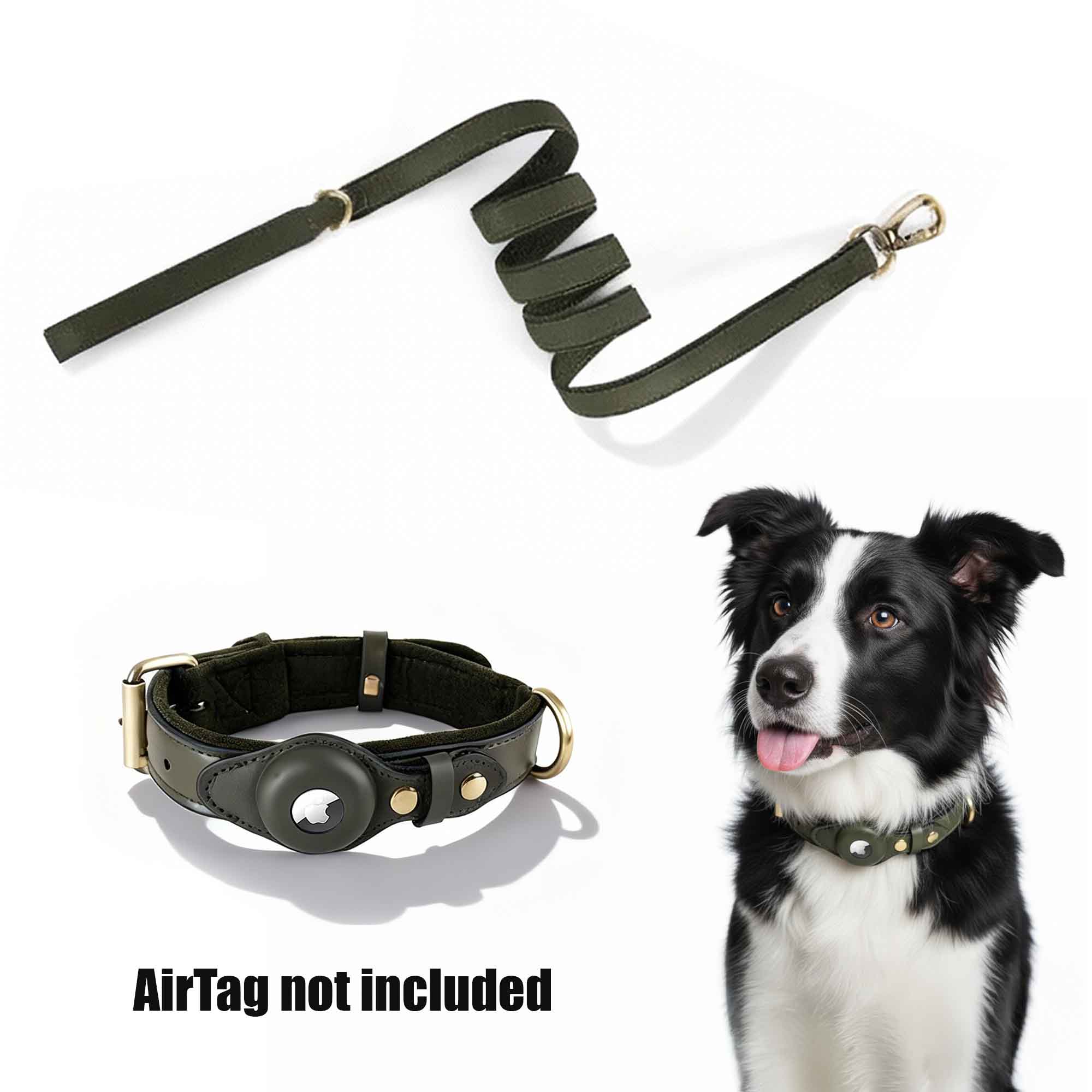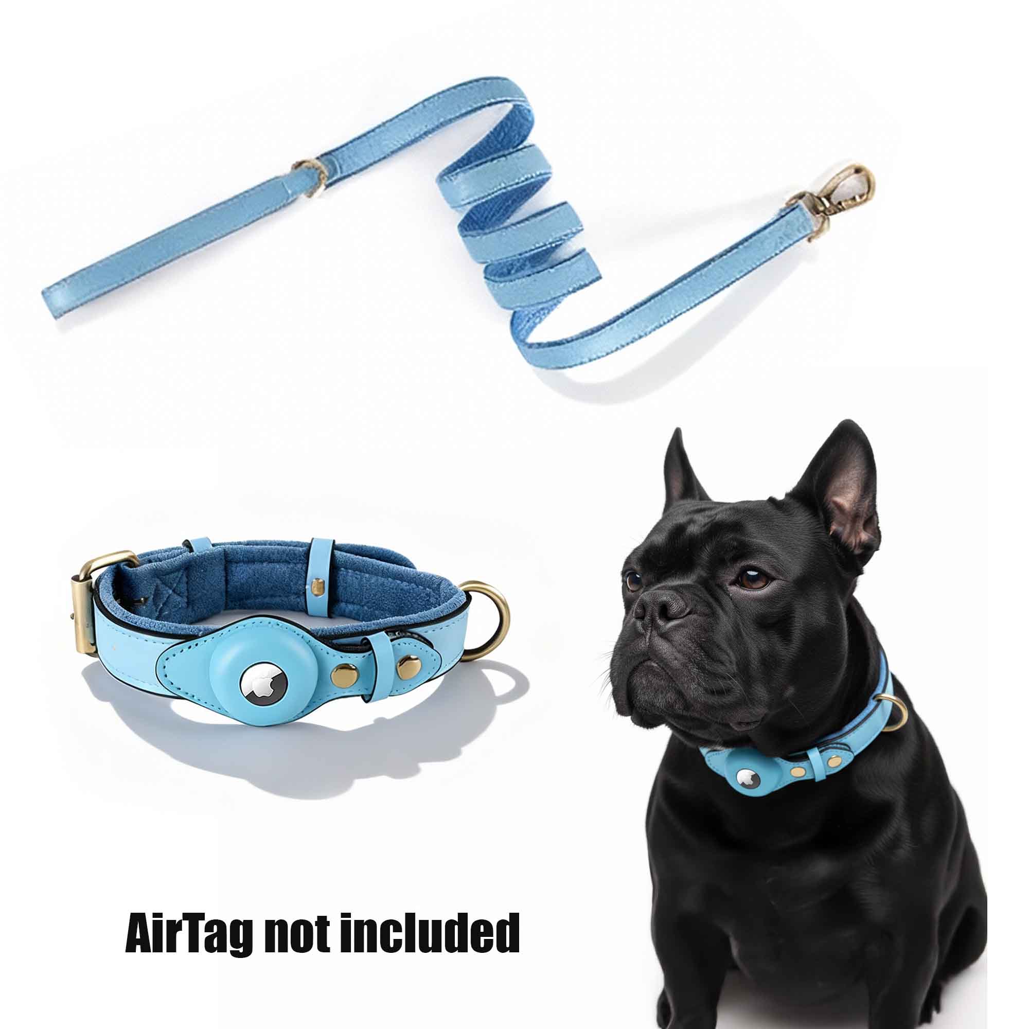 • AirTag Holder Collar: Leather + Fabric, Durable metal buckle and D-ring